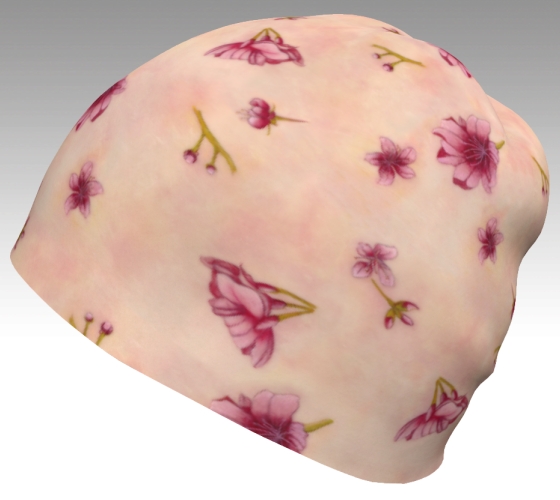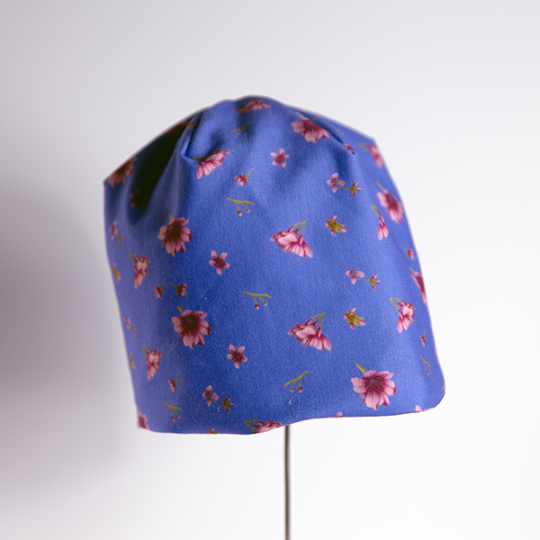 Baby and Youth Beanies in Cherry Blossom on Pink, Purple, or Abstract Blue
