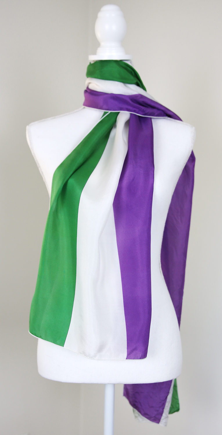 Suffragette (UK) – violet, green and white (Satin Charmeuse fabric shown)